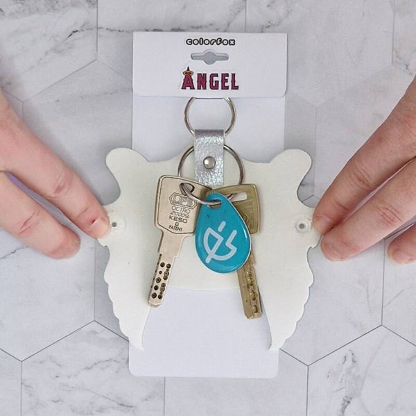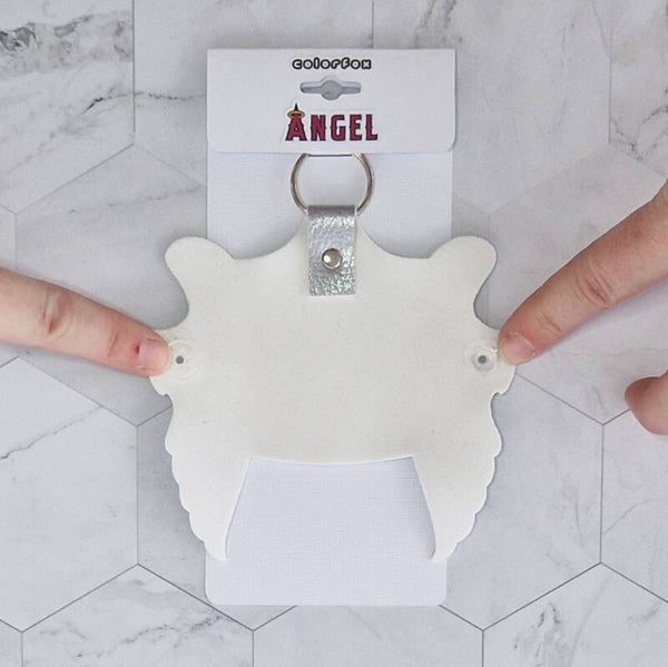 Een fraaie kunstleren sleutelhanger waarvan de vleugels van de engel je sleutelbos omhelzen. Openen en sleutel gaat eenvoudig met een drukkertje.