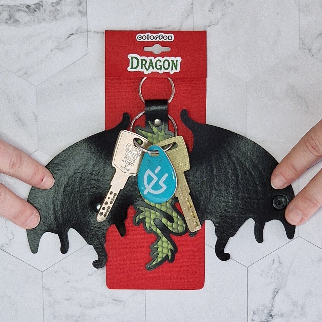 Een fraaie kunstleren sleutelhanger waarvan de vleugels van de draak je sleutelbos omhelzen. Openen en sleutel gaat eenvoudig met een drukkertje.