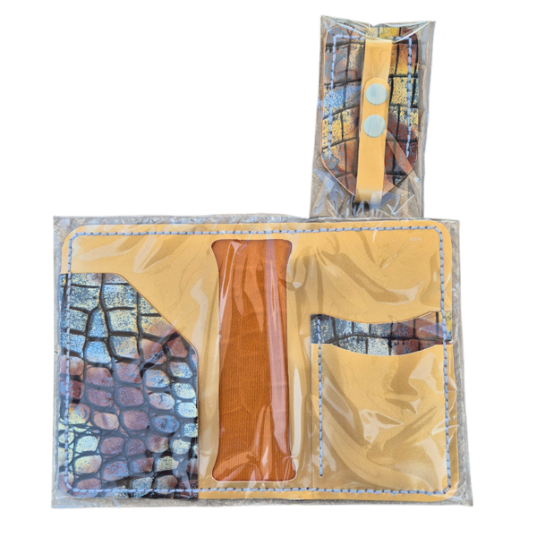 Een fraaie paspoort cover van kunstleer, met ruimte voor bijvoorbeeld je boarding pass of bonnetjes, en ook insteekvakjes voor je betaalpassen. Het bijpassende bagagelabel maakt het geheel hélemaal af.