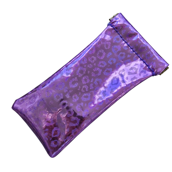 Niet te groot, niet te klein, maar wel een flitsende verschijning: dat is deze toffe kunstleren brillenhoes met knijpsluiting.
